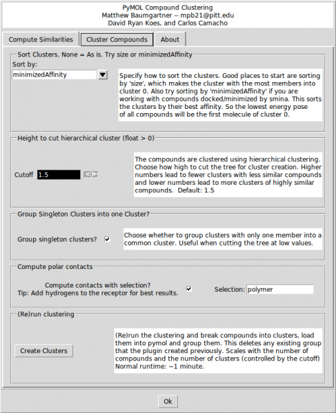 | current | 17:41, 24 July 2014 | 650 × 800 (67 KB) | Mpb21 (talk | contribs) | Image of the clustering screen from cluster_mols |