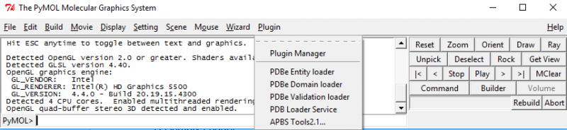 screenshot of the PDBe plugin menu