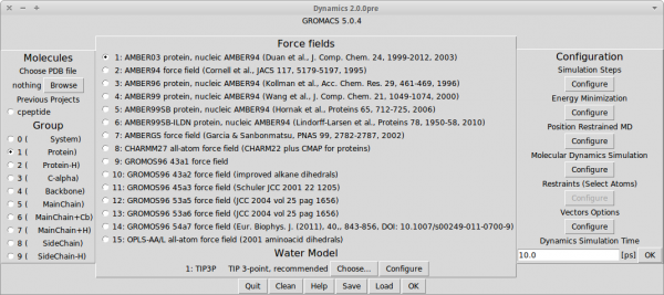 Dynamics PyMOL Plugin is plugin for PyMOL, which add molecular dynamics simulation feature. It is meant to be easy to use. The plugin uses GROMACS tools as a back-end. Project is developed as an open source and as such create full open source stack together with PyMOL and GROMACS. Software works on Linux, MacOS X and Windows/Cygwin.
