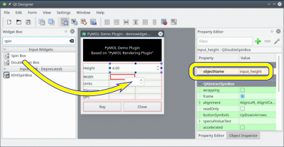[edit]This tutorial shows how to write a PyMOL plugin with PyQt. The full source of the demo plugin is available on github.