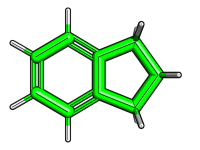 [edit]# load a molecule fragment indane show_as spheres # white background makes black outlines bg_color white # enable outline mode set ray_trace_mode, 3 set ray_trace_disco_factor, 0.0 ray