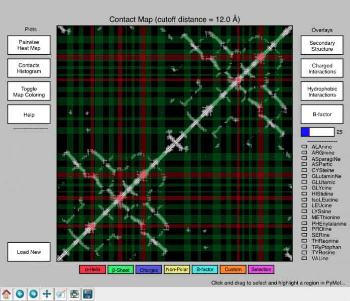 | current | 13:31, 30 April 2013 | 877 × 754 (201 KB) | Venky (talk | contribs) | Screenshot of CMPyMOL software that interfaces with PyMOL to combine 3D visualization of protein and 2D contact map representation. |
